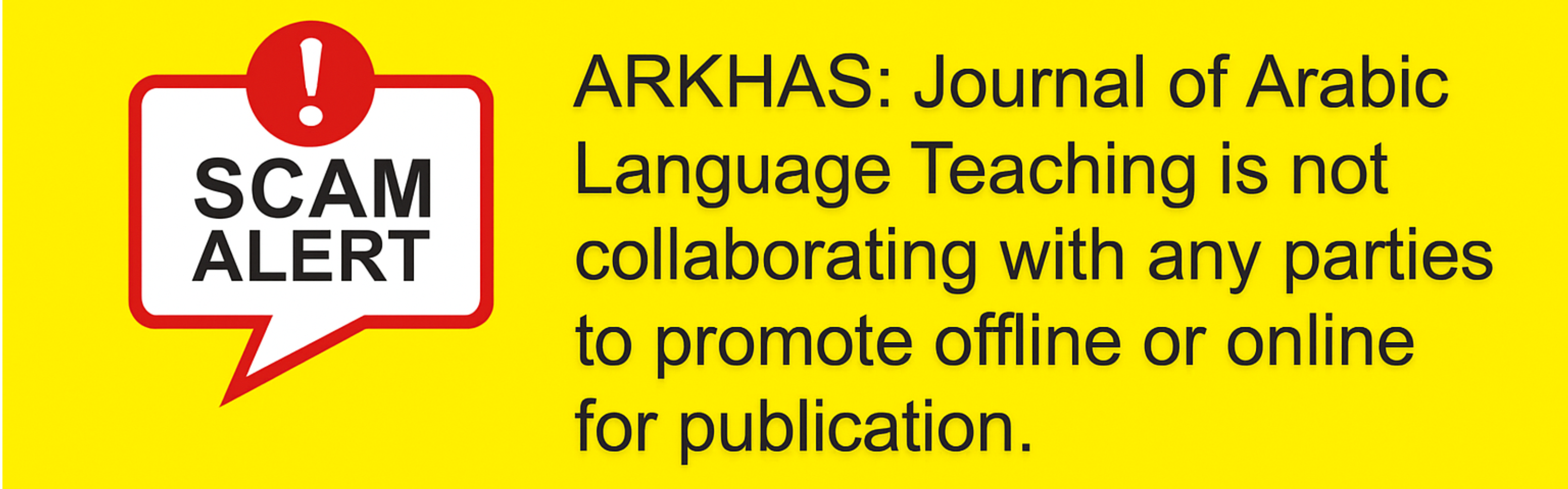 ARKHAS: Journal of Arabic Language Teaching has been indexed in DOAJ (Directory of Open Access Journals) and accredited by the Indonesian Ministry of Research and Technology. It has been ranked Sinta 4 (fourth grade) by the Science and Technology Index under No. 10/C/C3/DT.05.00/2025. For more information, please Read Here.